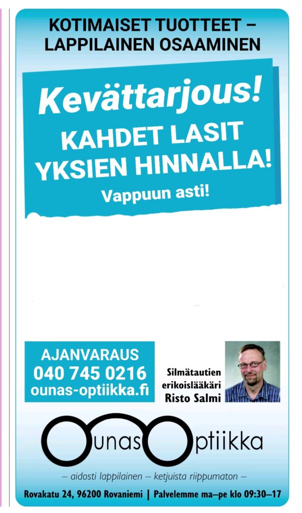 Liikkeellämme on oma silmälääkäri Risto Salmi, joka on paikalla lähes päivittäin, joten vastaanotolle pääsee nopeasti. Aikataulu on soviteltu väljästi, joten myös päivystysaikoja pystytään tarvittaessa järjestämään.